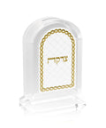 The Woven Leatherite Tzedakah Box brings together tradition and elegance to your Hadlakos Neiros. Crafted with intricate embroidery and premium textured leatherite, this refined piece is available in stunning gold or silver finishes. Whether used for hadlakos neiros or general tzedakah, it serves as a beautiful reminder of generosity and faith. An ideal gift for yourself or someone special - a keepsake that honors meaningful moments.