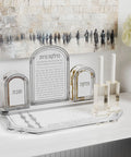 שדרגו את חוויית השבת שלכם עם סט קלאסי של Hadlakos Neiros ... תוספת ייחודית לביתכם, סט זה כולל הדלקוס ניירוס ברוכוס , תיבת צדקה , ו מחזיק המשחק, כולם עם כותרות ומסגרות תלת-ממדיות מוגבהות. עם גימור זהב או כסף אלגנטי וטקסט קל לקריאה על רקע לבן, זה גם יפה וגם פונקציונלי. המתנה המושלמת לעצמך או לאדם אהוב.