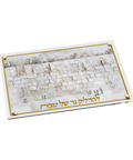 הצגת יצירת האמנות מעור מלאכותי מגש Hadlakos Neiros בצורה מדהימה קוסל שלווה עיצוב. מגש יוקרתי זה כולל עיצוב יפהפה קוסל שלווה הדפס אמנותי על עור ומעליו זכוכית מחוסמת לעמידות בחום. מושלם לנרות שבת, מוסיף נופך של אלגנטיות לכל בית.