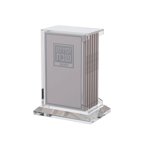 שדרגו את שולחן השבת או יום טוב שלכם עם השולחן המעודן הזה סט זמירוס מעור ולוסיט . כולל אותיות חדות ונועזות, מודפסות להפליא ומוגנות על ידי כיסוי חלק וקל לניקוי. כריכה קשה כיסוי עור, משלב סגנון ועמידות. הסט, המאוחסן במארז לוסיט שיקי, נשאר במצב חדש ומוכן לשימוש. קולקציית זמירוס זו מוסיפה נופך מתוחכם לעיצוב השולחן שלכם או מהווה מתנה נהדרת.
