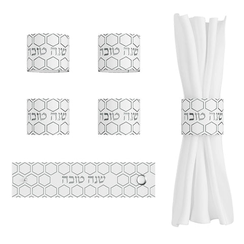 שדרגו את שולחן ראש השנה שלכם עם סט אלגנטי זה של ארבעה טבעות מפיות בצורת חלת דבש . עשויות מעור איכותי ורקומות בעדינות, כל טבעת כוללת טבעת זהב בלעדית חַלַת דְבַשׁ זמין בעיצוב זהב או כסף. מצוידים בסוגר מתכת לסגירה בטוחה, טבעות מפיות אלו משלימות בצורה יפה את עיצוב יום טוב שלכם תוך שמירה על המפיות במקומן בצורה מסודרת. מושלם ליצירת אווירת יום טוב מתוחכמת ומזמינה.