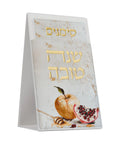 זה מעודן סט סימנים עם תפוח ורימון מעור כולל ארבעה כרטיסי עור מעוצבים להפליא הכוללים את רצון סימנים יהי המסורתיים, מאוחסנים באלגנטיות בנרתיק עור עם כותרת מוטבעת. הנרתיק והכרטיסים מעוטרים ביצירות אמנות מדהימות של תפוח ורימון, המסמלות מתיקות ושפע לשנה החדשה. סט בטוב טעם ומשמעותי שישדרג את עיצוב שולחן ראש השנה שלכם.