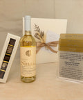 Packaged with style in a beautiful gift box wrapped up with ribbon and an elegant flower bouquet.